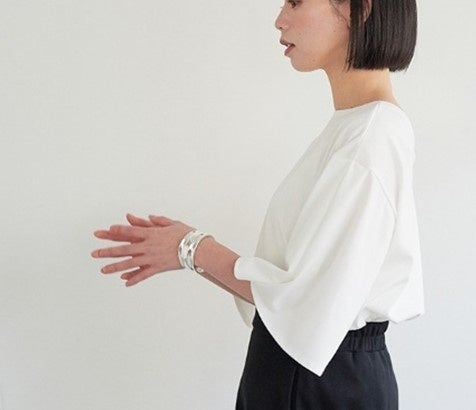 タックが入った袖はゆったりシルエットで、二の腕をカバーしてくれます。