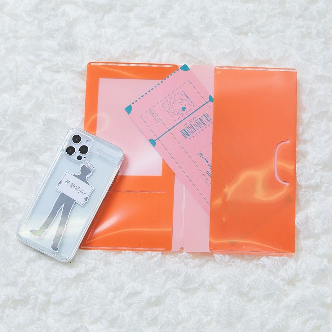 チケットやL判写真、アクスタ、会員証などオタ活に必要なグッズをまとめて持ち歩くのに適したスリムなマルチファイルです。パスポートケースや領収書の一時的な保管など、日常使いもしやすいシンプルなデザインと作りになっています。