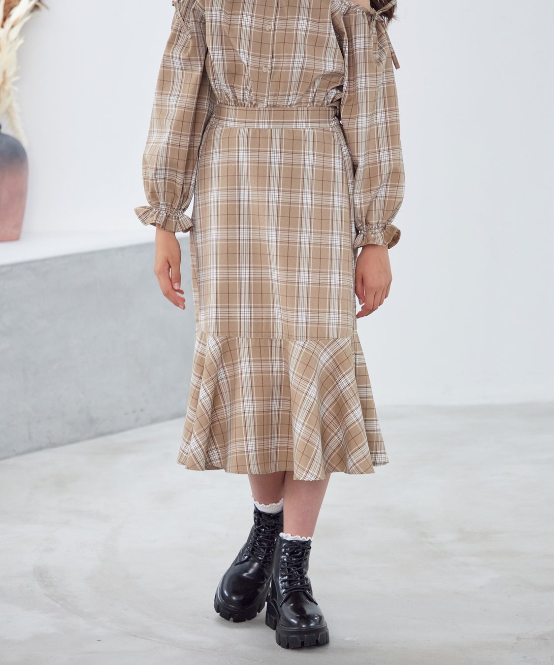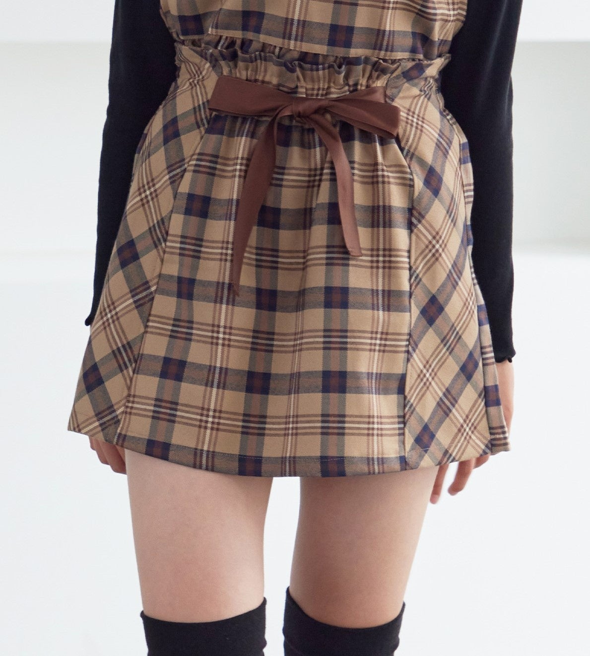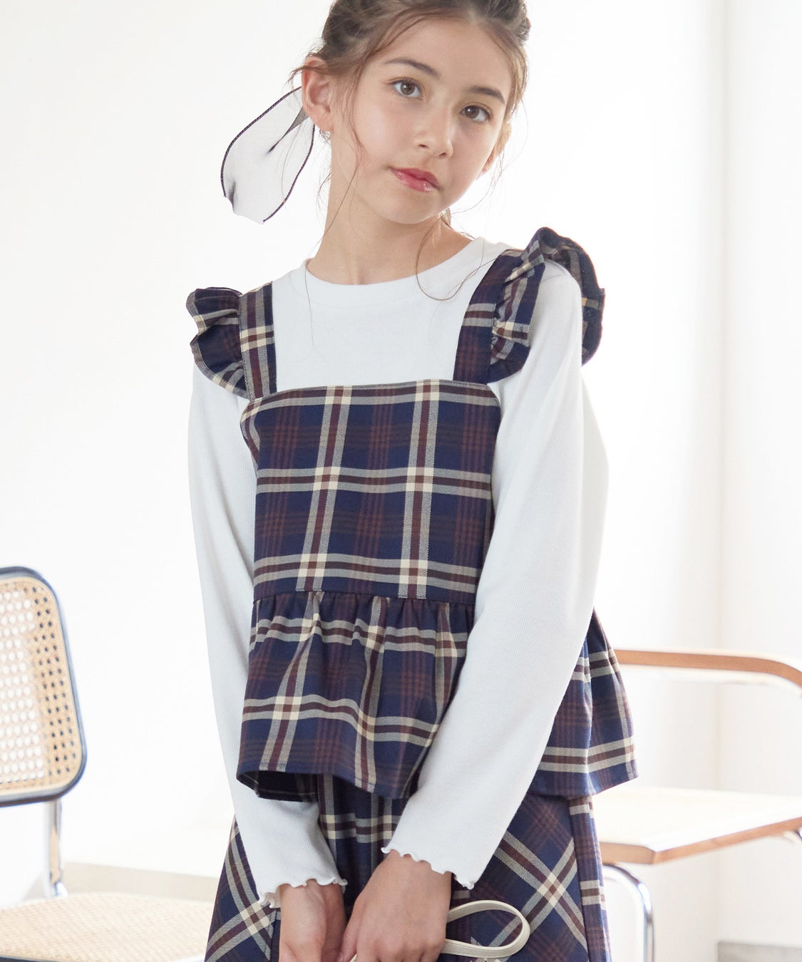 1枚でインナーとチェックビスチェを重ね着したようなコーデが完成するトップスです。秋冬らしい落ち着いたチェック柄をペプラム切り替えでトレンドデザインに。同素材のチェックスカパンと合せて、セットアップコーデも楽しめます。