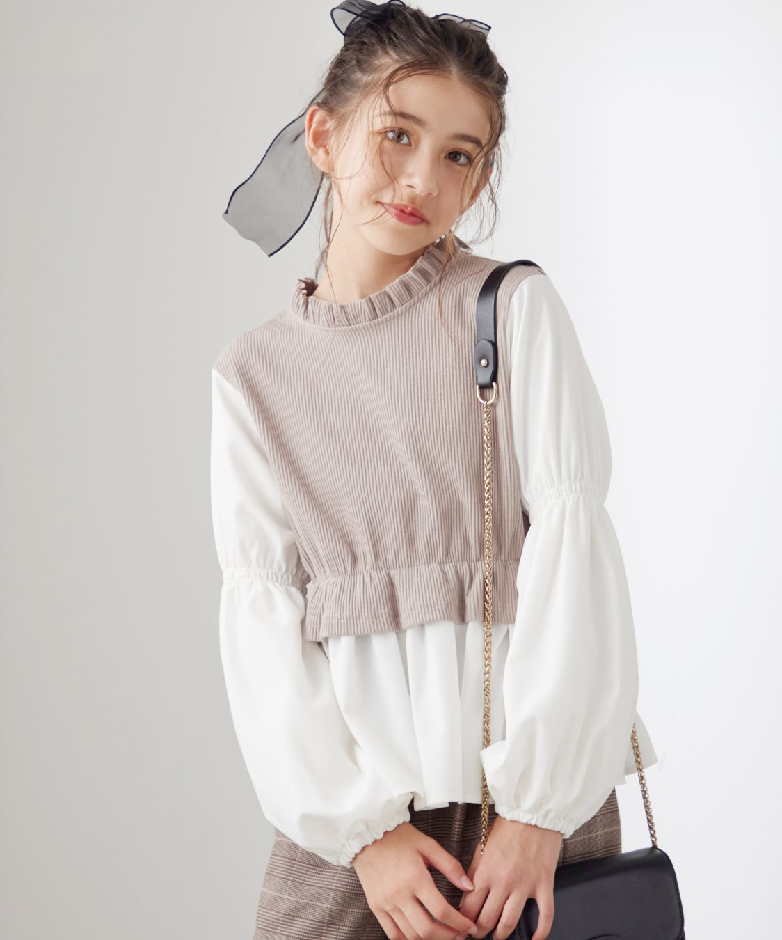 1枚でレイヤードスタイルが完成するドッキングトップス。