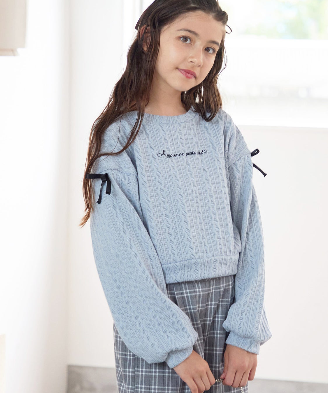 ・ショルダーリボン ロゴ刺繍ショート丈ニットソー