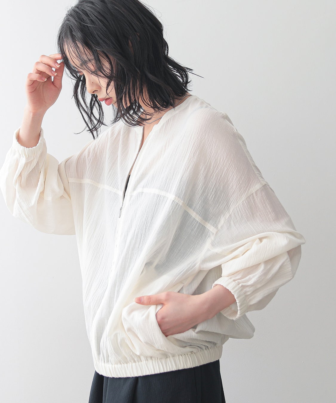 軽く羽織れるライトアウターは春に持っておきたいマストバイアイテムです。優しい透け感が大人かわいい1枚です。
