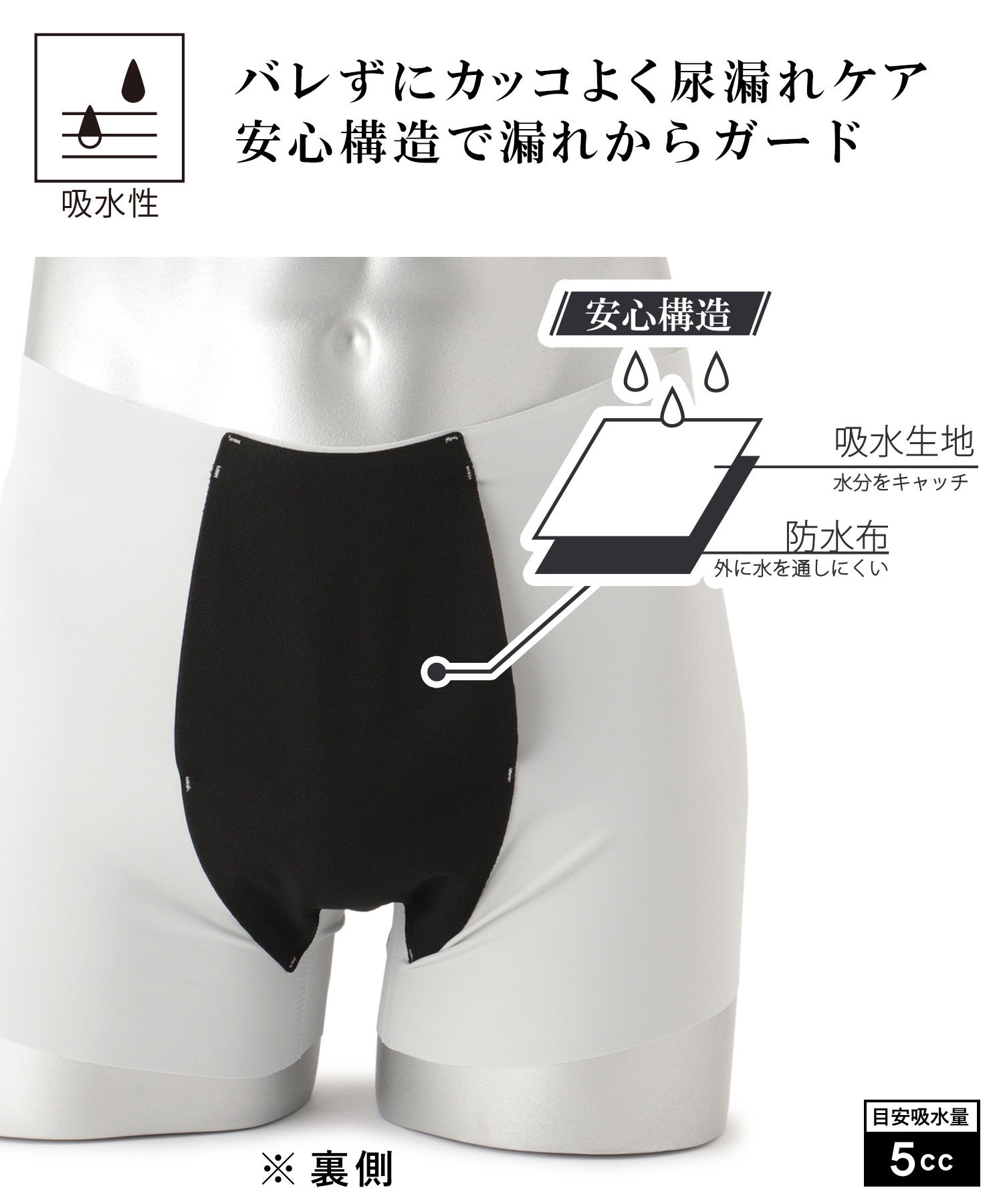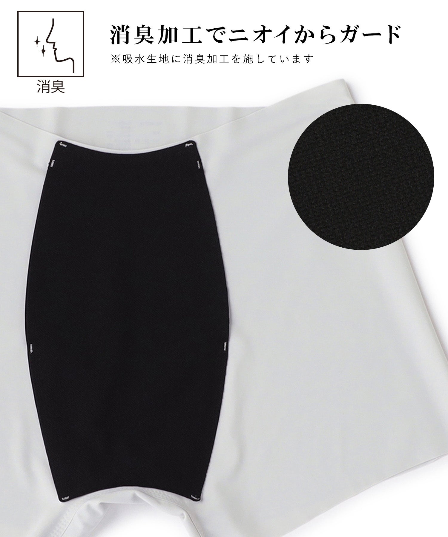 吸水生地と防水布の2層構造の超薄パッドを使用した安心設計。漏れをスピード吸収することで、肌側の生地表面の不快感を防ぎます。また生地全体にナノファイン加工※を施しているため、漏れだけでなく菌からもガードしてくれます。